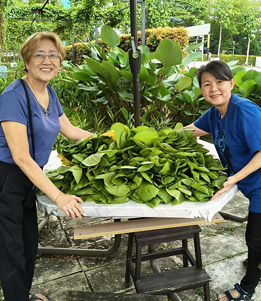 Greens and gratitude — Harvesting mustard greens with volunteer Siew Hiang